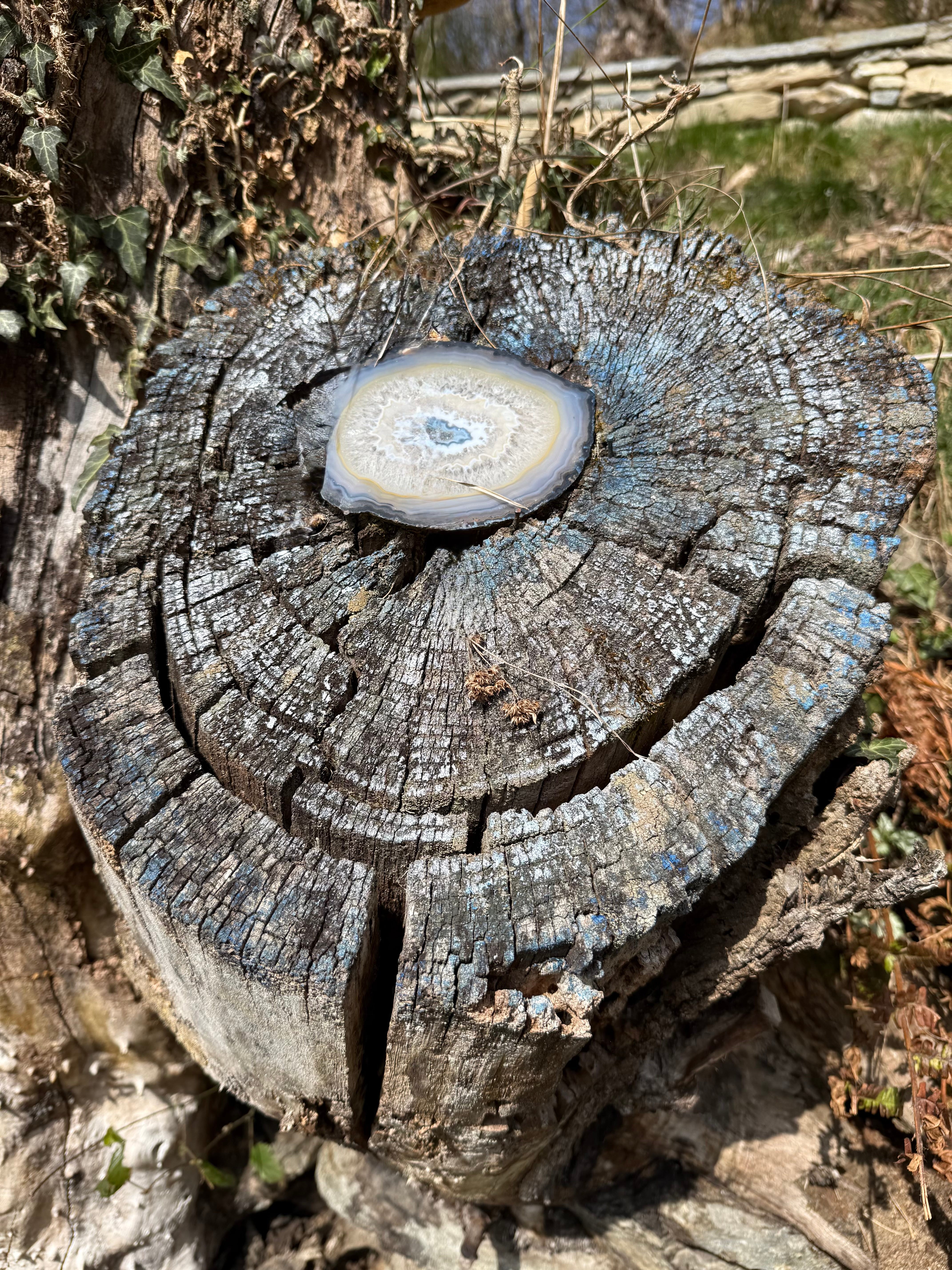 I stood in front of one particular stump, a face split down the middle like two halves of the same being and I felt something in my chest soften.