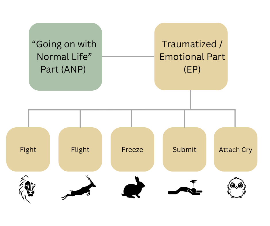Somatic Flight: The disconnection from your own body when emotions become too intense. This can feel like being a “head on a stick”, with no sense of the body at all.